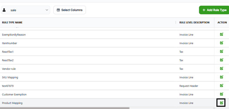 1. Click the Edit icon next to the newly created Rule Type
